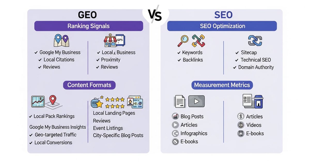 Key measurement metric | Rankings, organic traffic | Citation rate, AI visibility score |